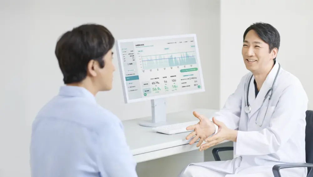 アプリで取り組んだ内容は、医師にも共有されます。診察では、医師と一緒に取り組みを振り返り、あなたに合ったアドバイスを受けられます。